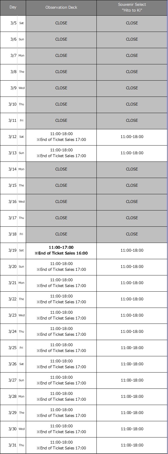 Notice of opening hours for November1st, 2025 ~ November 30th, 2025